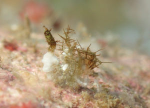 ガレを散策していると初めて見る色合いのオリヅルエビ!!