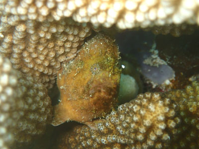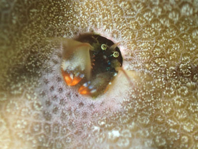 個体数の少ないヤドカリですが、このサンゴはこの子だらけ♪