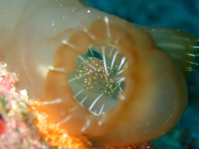 大きなユウレイボヤの中に大きなホヤカクレエビの仲間も♪