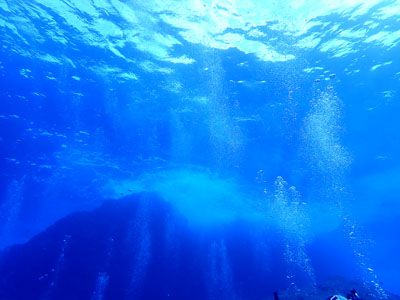 透明度も30mオーバー岩にあたる波もゲストの泡も透明度がいいと水中で見るものすべてに