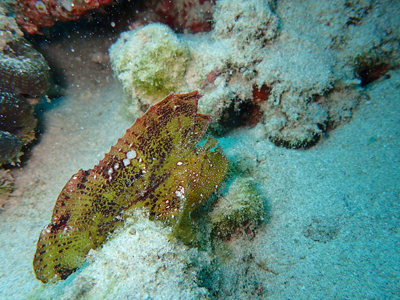 緑色のファンキーな背ビレ君は居着いてくれているハダカハオコゼ!