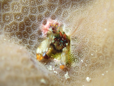 爪の先っちょが赤色になったニシキカンザシヤドカリ!!