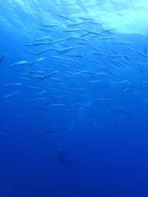 今日は最近奥の方で群れているアカカマスの群れ!!