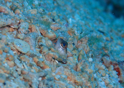 ハゼの近くに1センチ程のジョーフィッシュの子どもが居着いてくれています。