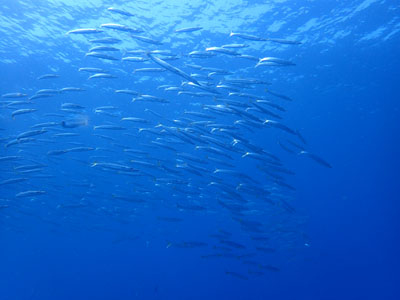 今年はコブシメが少なので、この時期に群れるアカカマスの群れ~!!