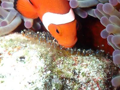 カクレクマノミもハッチアウト寸前の卵を頻繁にお世話してました♪