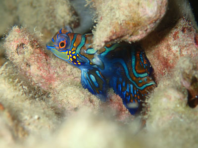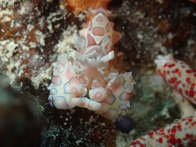 ダルマハゼ好きのゲストさんが呼ぶので行ってみると見やすい隙間のたっぷり空いたヘラジカハナヤサイサンゴの中にダルマハゼsp☆