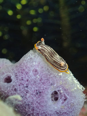ウミウシのちょくちょく居てくれるポイントでは紫の海綿に乗ったホソスジイロウミウシのシダメル☆