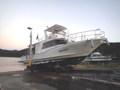 ボロボロになった船底を船上げして船底塗料を綺麗に塗りなおします☆