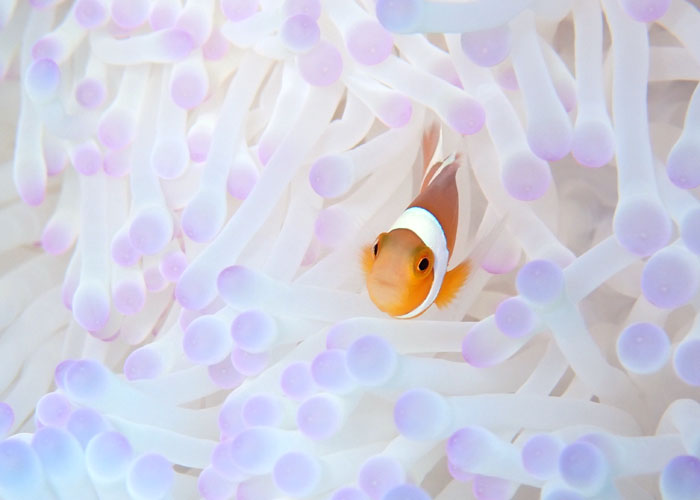カクレクマノミの子どもも、まだまだ写真映えなイソギンチャクの中でかわいい顔を覗かせてくれました♪