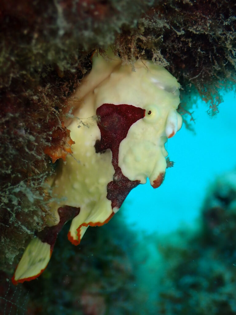 今日はちょっと木陰で涼んでいる様子のクマドリカエルアンコウ!!