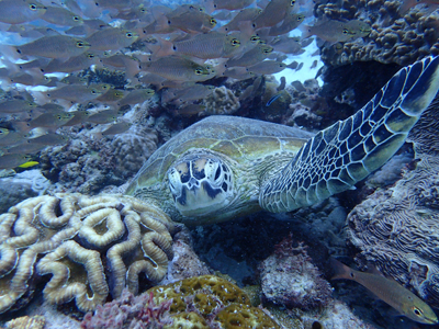 めちゃくちゃ人懐っこいアオウミガメも根の中で寝てました(笑)