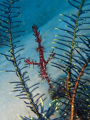 台風後いなくなっていたニシキフウライウオ、ちょっと引越しをして違うウミシダに