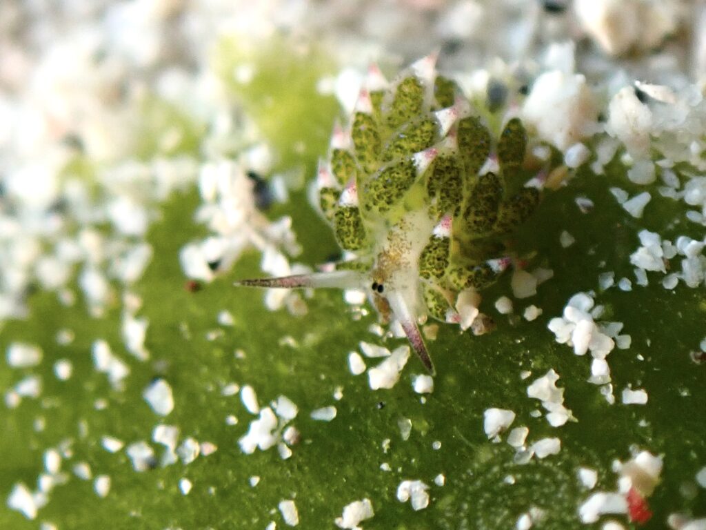 写真の真ん中に触覚が出ている緑のウミウシ!!