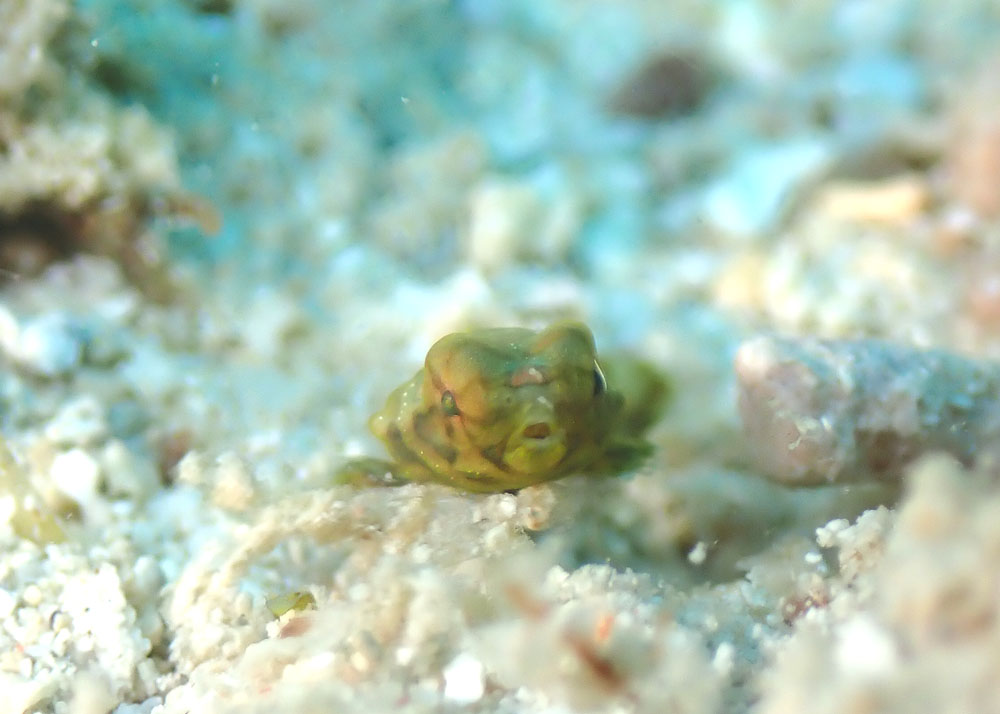 カエルアンコウ好きのゲストさん、と言うことだったので居着いてくれている黄色いクマドリカエルアンコウをご紹介しようと外洋へ~~~!!