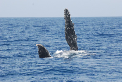 そして、戻りながらクジラのブローを探していると、テールスラップをしてる1頭が!!