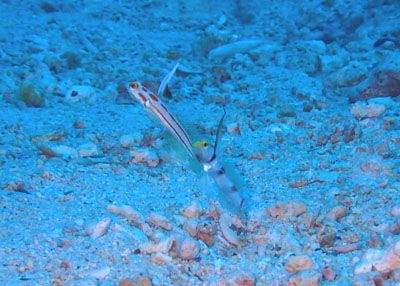 同じ巣穴で仲良く暮らしているヒレナガネジリンボウとヤシャハゼも居てくれました☆