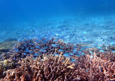 サンゴの上のデバスズメダイもめちゃくちゃ綺麗♪