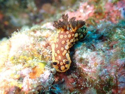 外洋ではウミウシもオレンジがお美しいベニゴマリュウグウウミウシ!!ニジエラの下に真っ白のコペポーダも隠れております♪