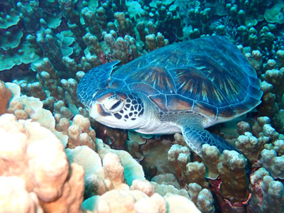 寄っても全然気にしない小さなアオウミガメも居てくれました♪