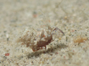 ムラサキの海綿を住処にしているニシキカンザシヤドカリ!!