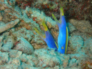 今日はハナヒゲウツボ同じ巣穴から2匹出ていました。