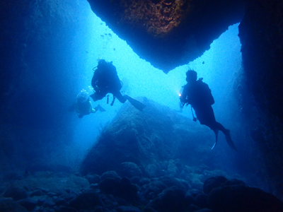 地形なポイントは黒と青のコントラストがやっぱり水中の青は何とも言えない美しさですね☆