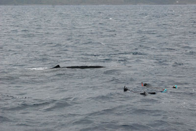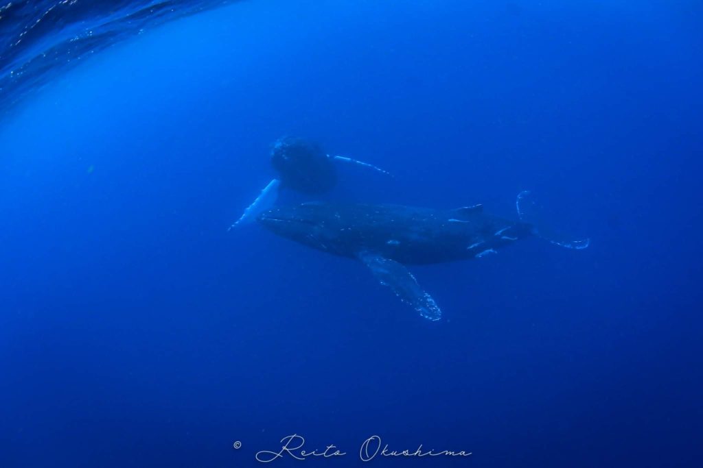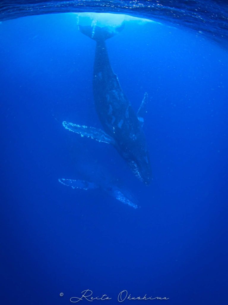 見えたタイミングでフィンを動かさずじっと観察していただければクジラもまったりしてくれます。