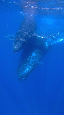 下にいた親子クジラが寄り添って皆さんの近くに上がってきてくれました。