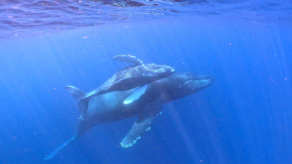 その後仲良くさせてもらっている船から情報があったので、そちらに向かうと親子クジラ!!