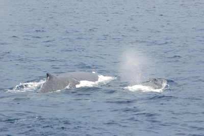 するとかわいい背中の子どもが母クジラに寄り添って居てくれました。