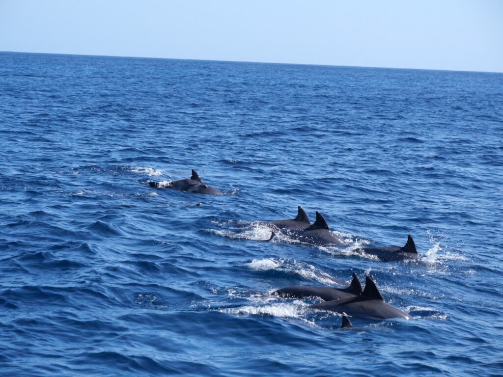 ミナミハンドウイルカが50頭くらいの群れで移動中でした♪