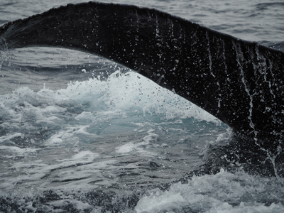 これだけアップだとクジラから落ちる水滴も、クジラの尾ビレの太さも