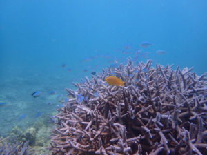 サンゴもスズメダイの子供たちもたっぷり居てくれるこのポイントでたっぷり
