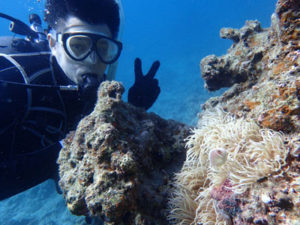 10年くらい前に体験ダイビングをしたことがあるということでちょっと緊張も