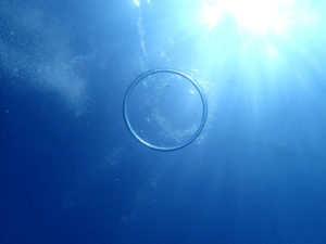 体験ダイビングだとバブルリングも太陽と合わせてもっと素敵になります。