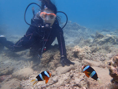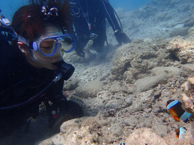 ダイビングならこんな近くで魚たちを観察できるのでクマノミもTさんを凝視(笑)