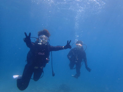 中層も泳ぎながらダイバーとして水中をたっぷり味わったお二人は余裕のこのポーズ!!