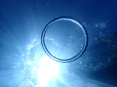 バブルリングも水面まで上がっていくにつれて大きくなって、