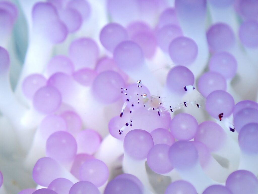 カクレクマノミの綺麗なイソギンチャクに居着いているニセアカホシカクレエビ!!