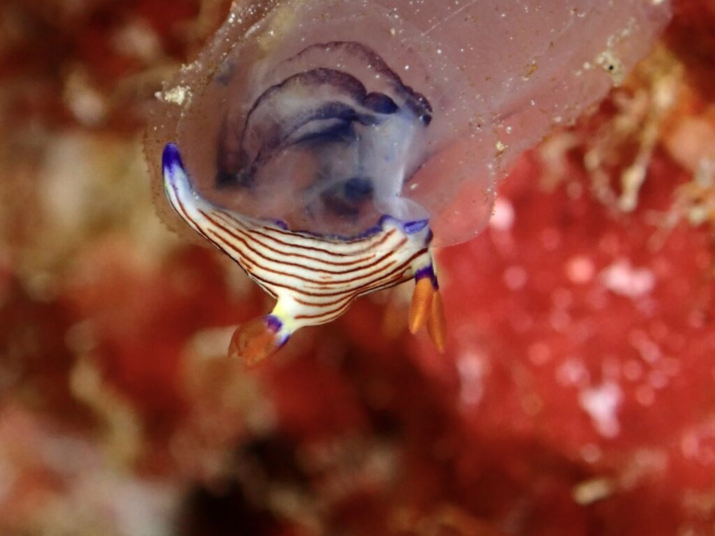 クロスジリュウグウウミウシはホヤを捕食中~!!