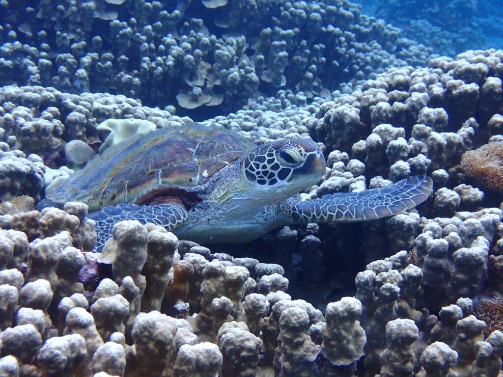 最近この場所がお気に入りのようで、お出かけ中以外はたいがい、この場所でお休みしているアオウミガメのチビ!!
