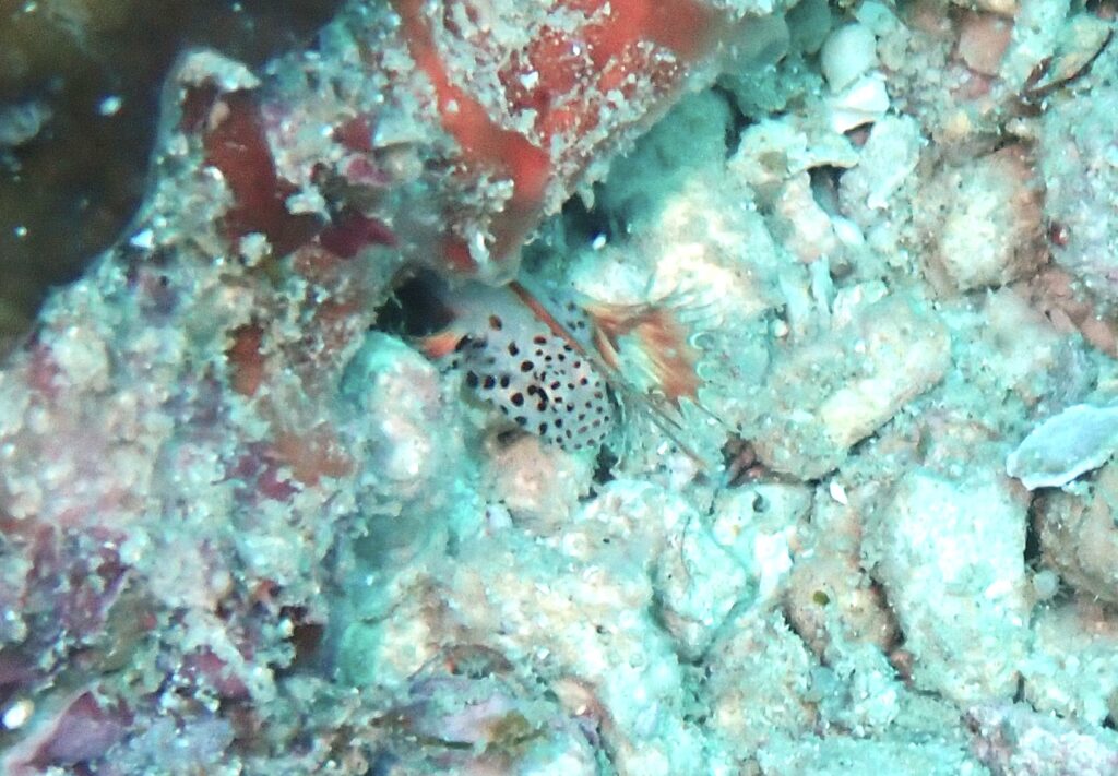 移動しないせいか?背中に藻が生えて、イシガキカエルウオが良く背中に乗って藻を食べてます(笑)