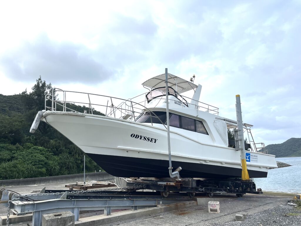 今日は年に2回行う船を上架してのメンテナンス作業~!!