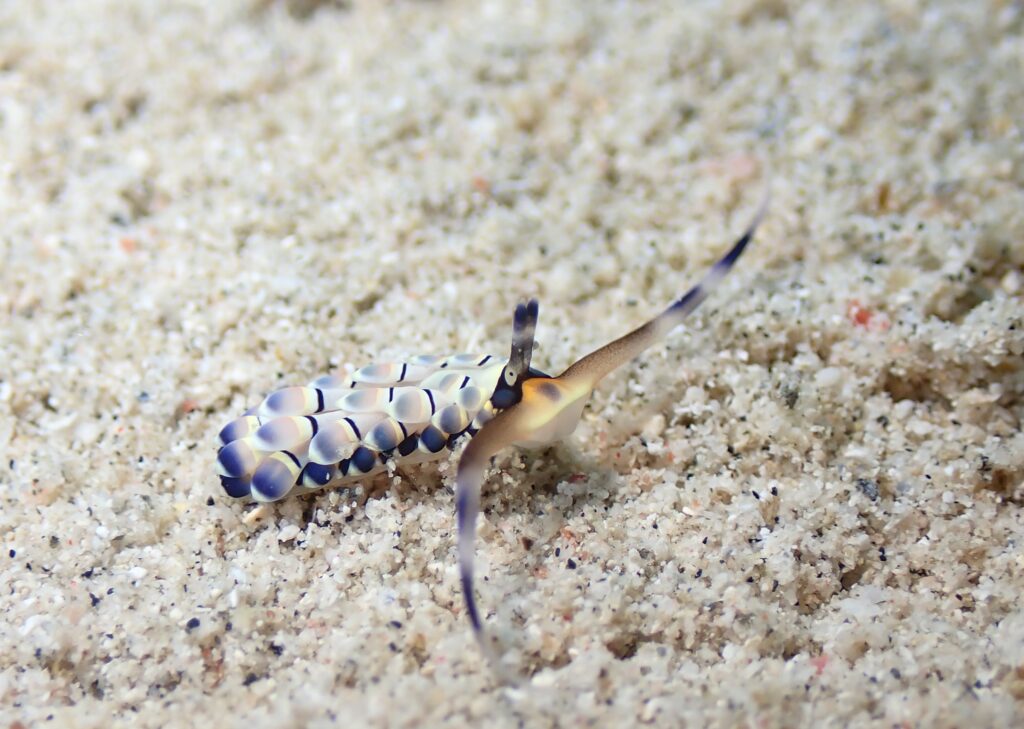 リュウキュウカスミミノウミウシという砂地に潜るタイプのウミウシです。