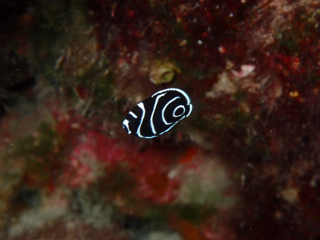 甲殻類の多いまた別の根ではタテジマキンチャクダイの幼魚がたっぷり♪