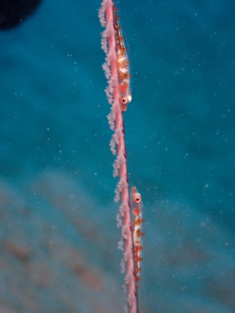 ガラスハゼの仲間はウミエラでイチャイチャ中でした。