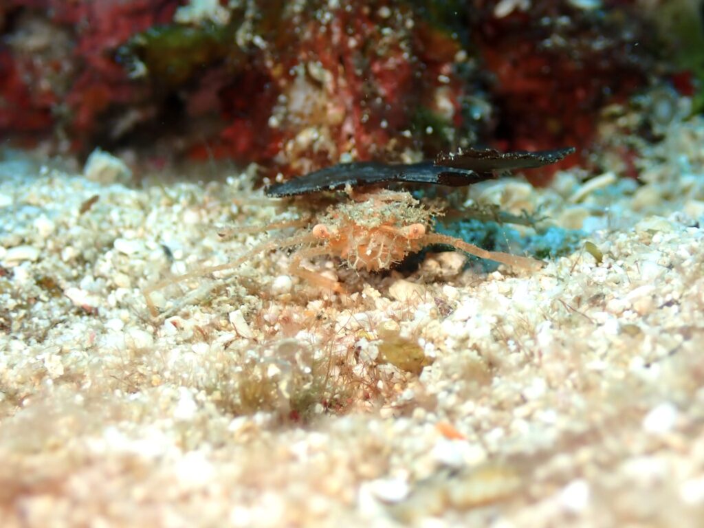 少し前に見つけたフリソデエビは居着いてくれていました♪