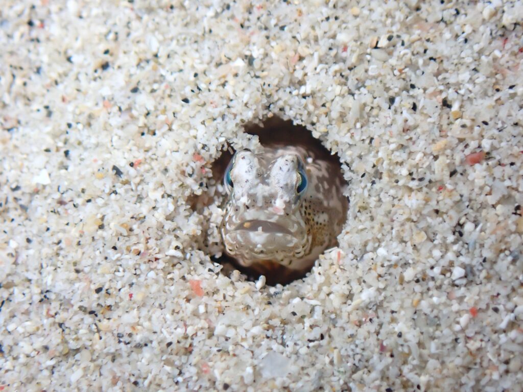 砂地にジョーフィッシュのように顔だけ出してあまり動かないこのハゼ!!