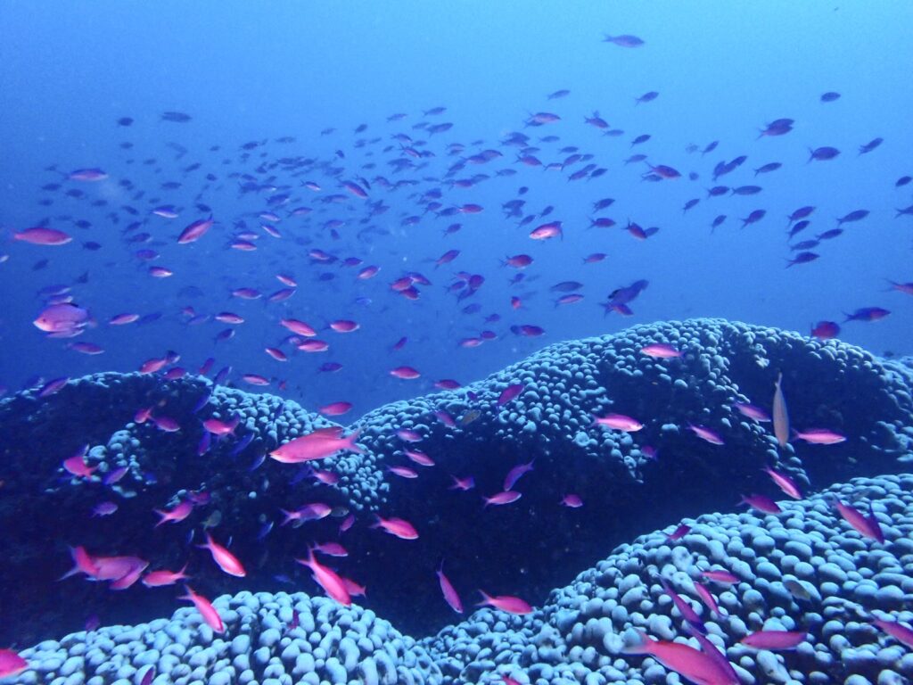 大仏サンゴはスカシテンジクダイ、キンメモドキの爆発は終わってスミツキアトヒキテンジクダイの爆発が始まってます。